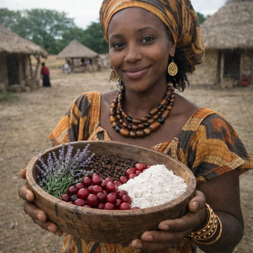 Elke zondag verzorgde mijn moeder mijn haar met poeder uit Tsjaad. Haar haar was lang, dik en sterk — zonder chemicaliën. Ik startte mamachebe om die traditie met jou te delen.